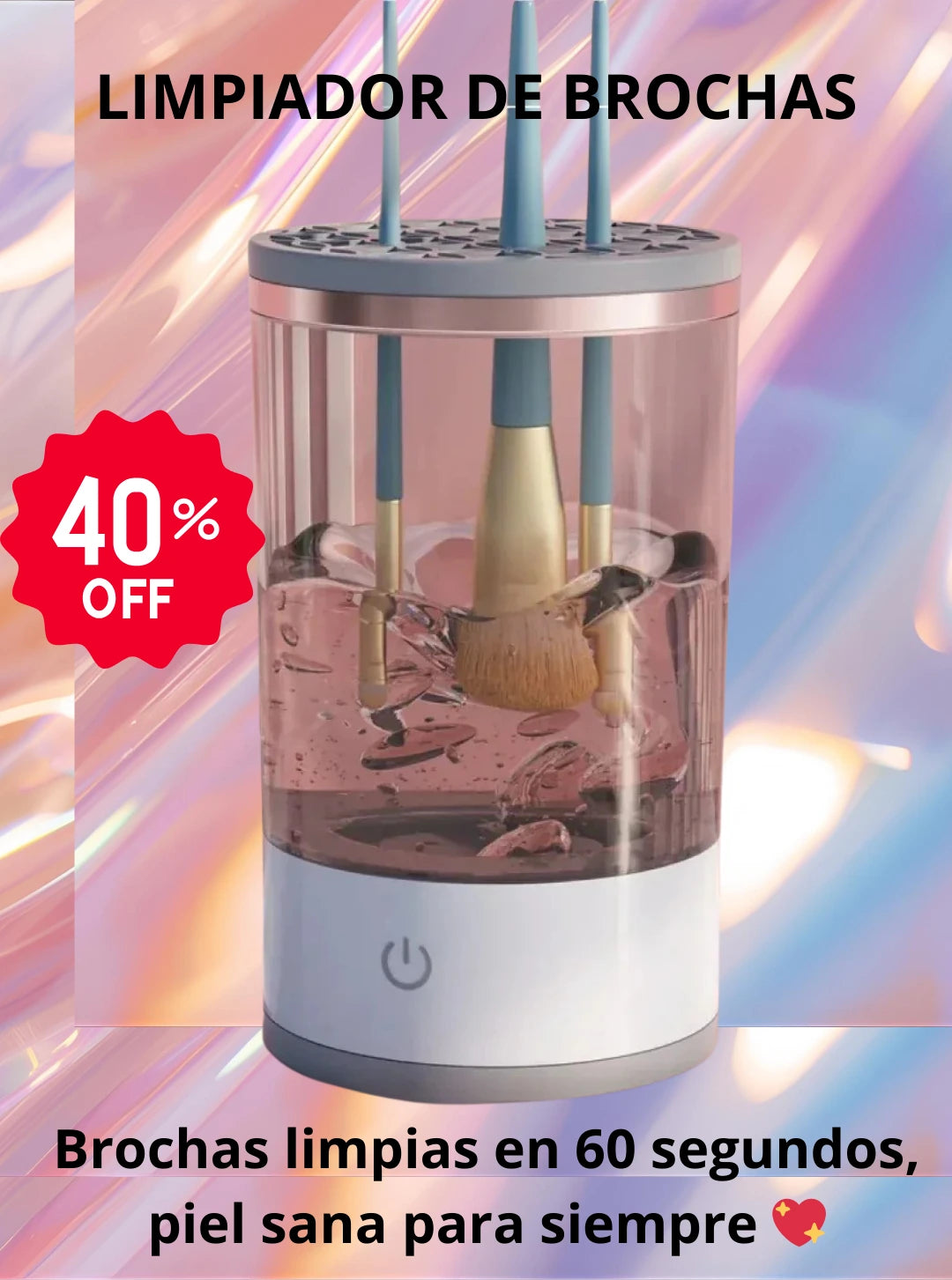 Limpia, desinfecta y seca tus brochas en segundos, sin esfuerzo y sin dañarlas.